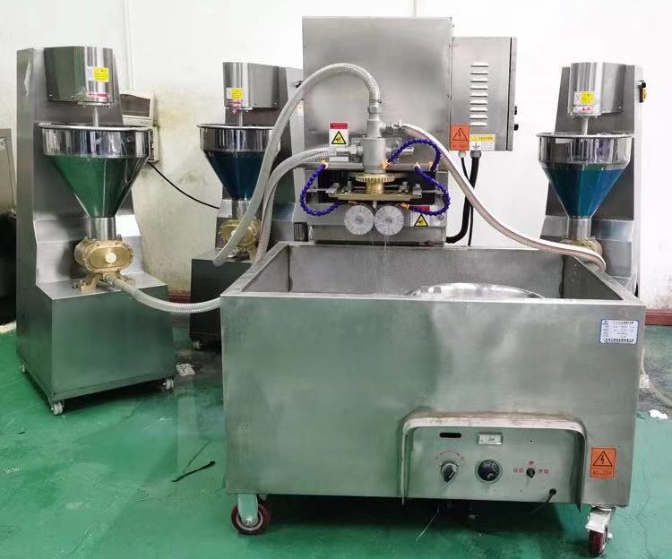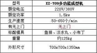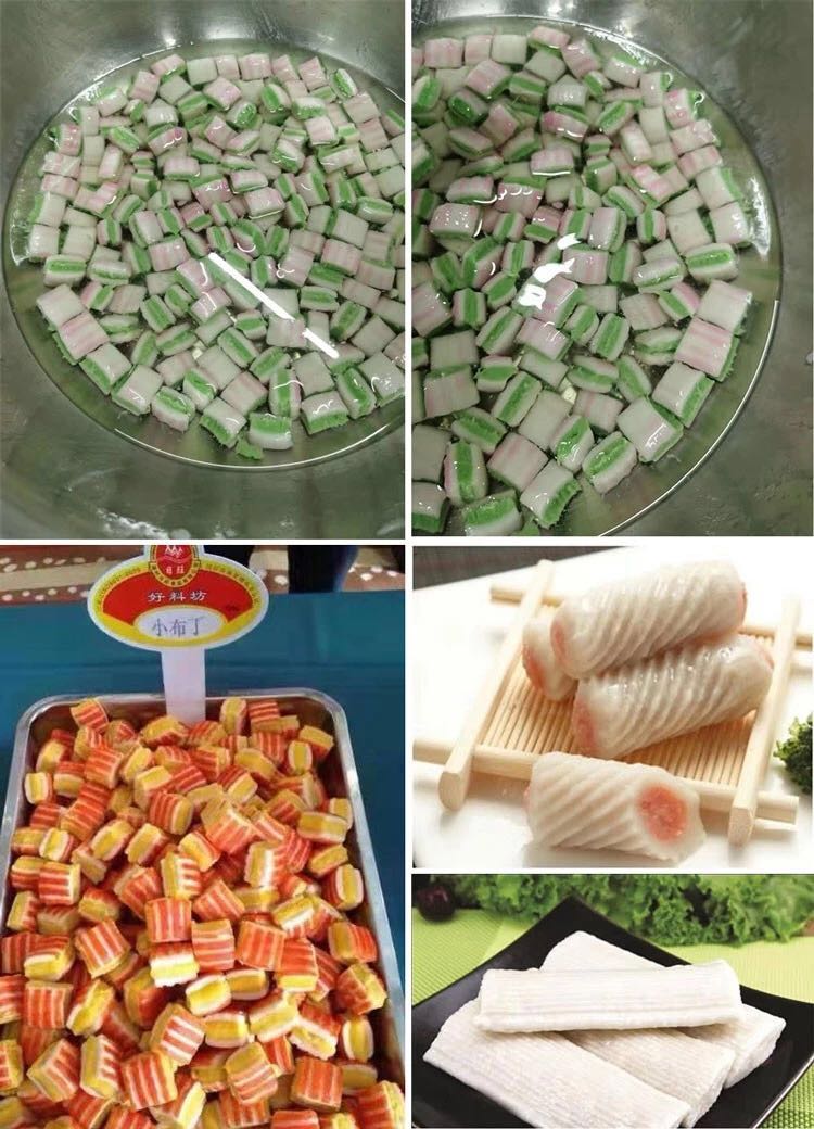 709多功能成型機新一代的多功能淡水丸機為魚肉制品成型設備,配合泵脯(供料機)使用,能生產(chǎn)出單色、包心及多色各種花式的品種,單色配一臺、兩種顏色配兩臺、三色配三臺。該機采用雙電機雙變頻設計,不單只是速度可調(diào),而且產(chǎn)品上的條紋旋度也可調(diào),使得做出的產(chǎn)品更多樣化,操作起來更方便。特別配備滾切刀,能生產(chǎn)出平口和圓口的淡水丸,具有一機多用的特點,可做產(chǎn)品:淡水丸、魚排、小布丁、鱈魚卷、蝦卷、蟹卷、烤魚棒、片片脆、鴛鴦片等火鍋料