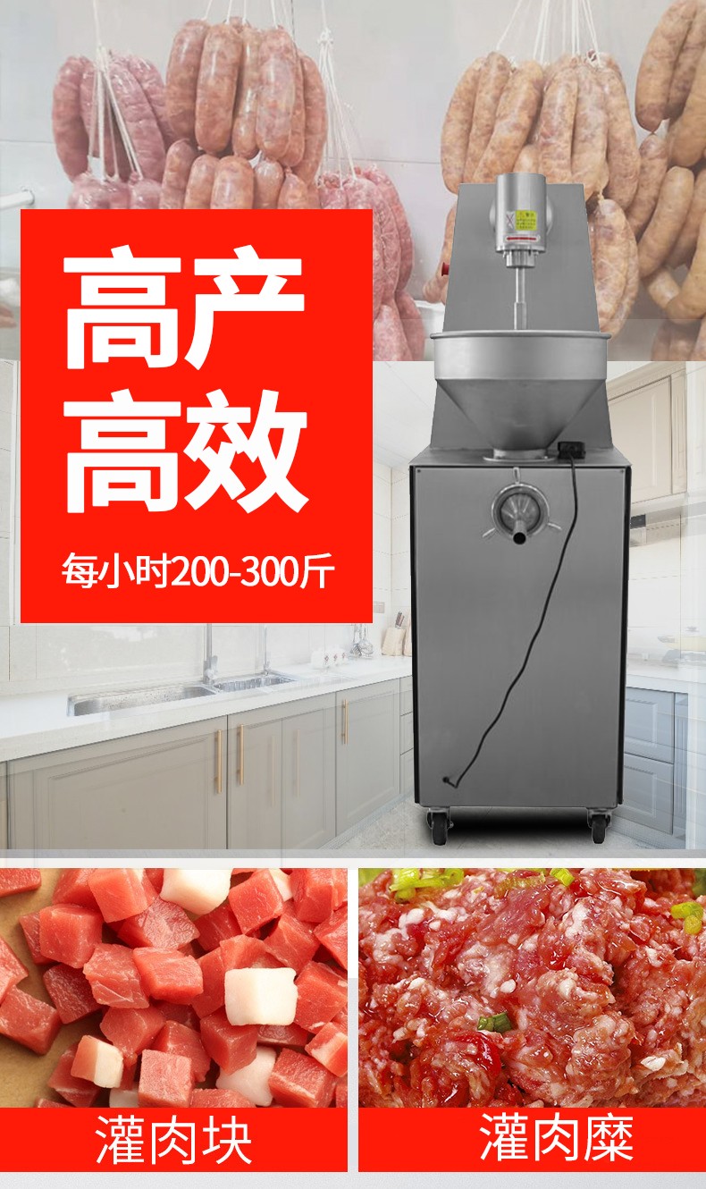 全自動(dòng)商用灌腸機(jī)——XZ-320灌腸機(jī),專門針對(duì)灌四川香腸的肉片,肉片不攪碎。